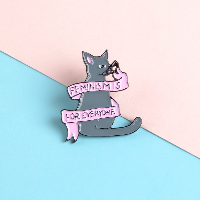 "FEMENISM FOREVER" пин-брошь с серым котом и надписью