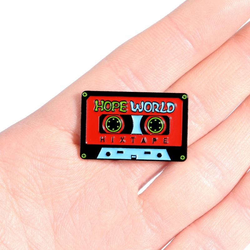 Пин в виде красной-черной кассеты с текстом надежда мира