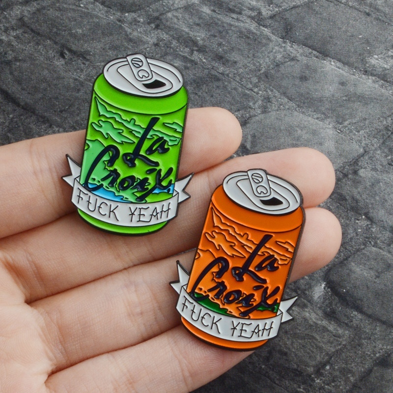 Оранжевый и зеленого цвета пины в виде банок газировки