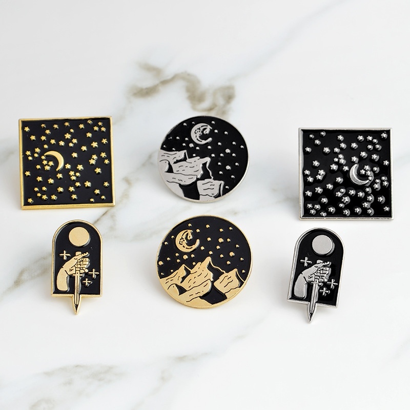 Пины золотые и серебряные космические пейзажи на черном фоне