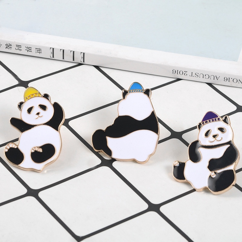 Пины-значки в виде панд в разных позах и шапках разных цветов