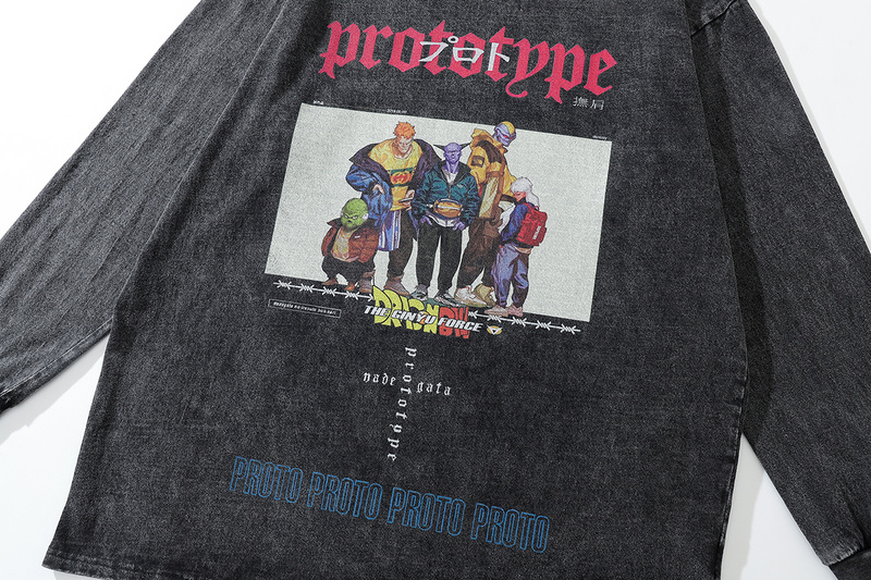 Плотный чёрный лонгслив с принтом на груди от бренда TKPA