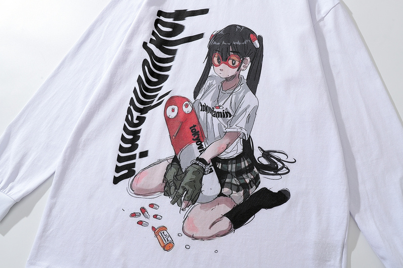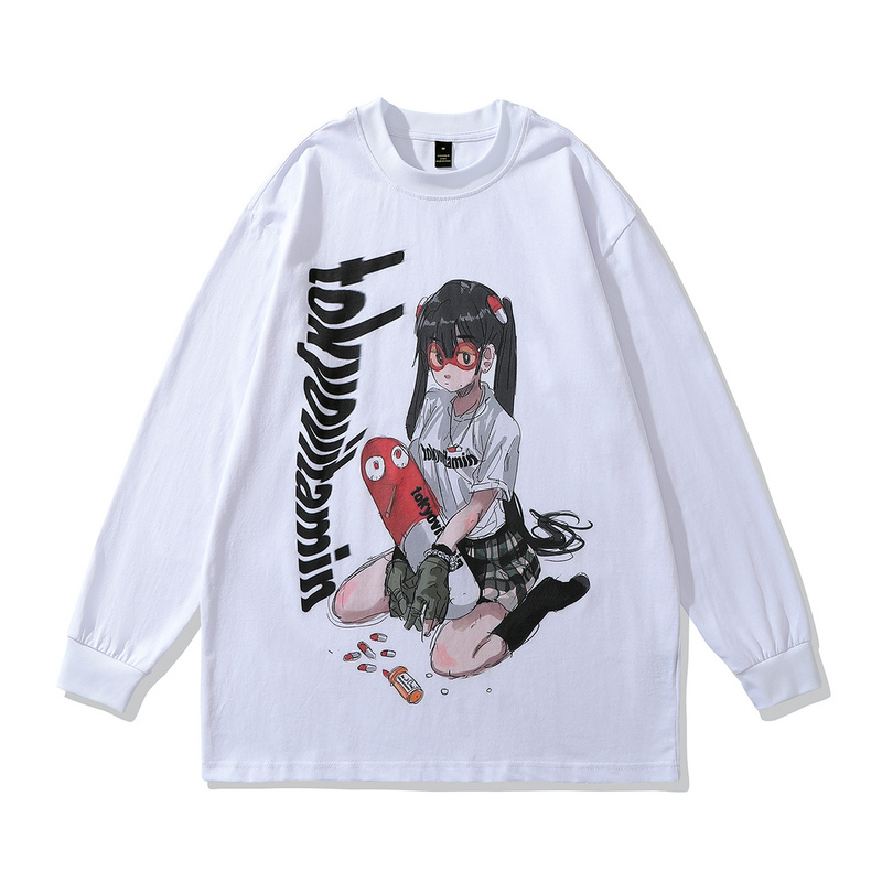 Плотный лонгслив TKPA белый с принтом в стиле японского аниме