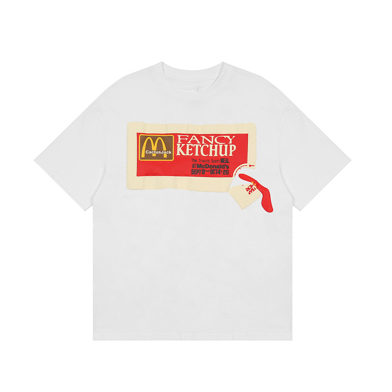 Полностью белая Cactus Jack футболка с принтом "Кетчуп"