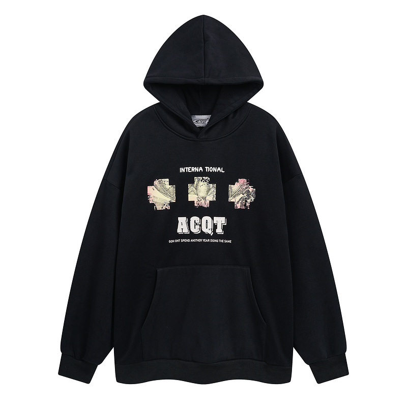 Полностью черного цвета худи ACQT с карманом кенгуру