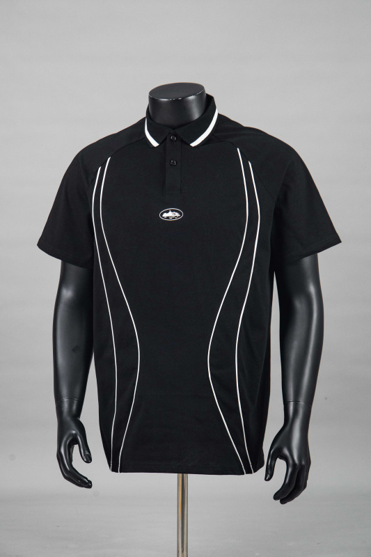 Поло Corteiz базовое в черном цвете с белой полосой на воротнике