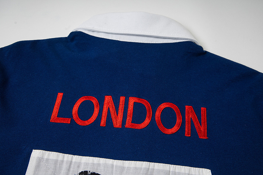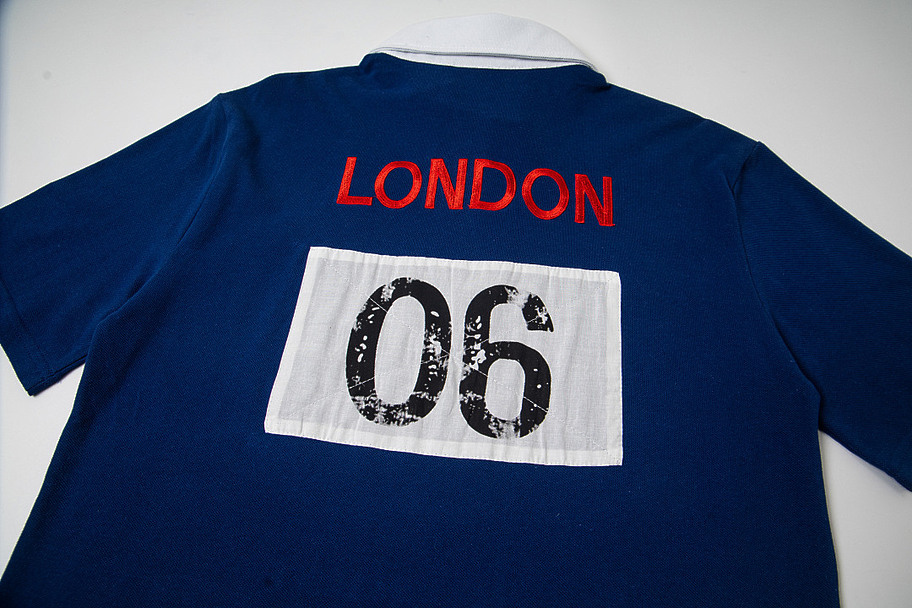 Поло Mowalola в синем цвете с белым воротником прямого кроя