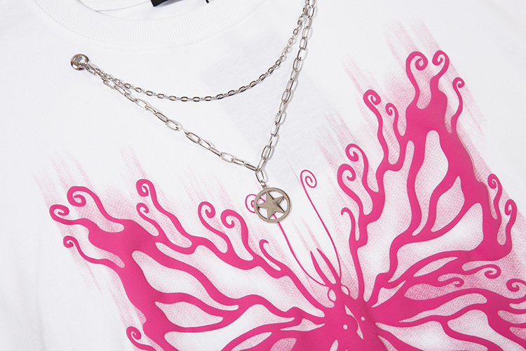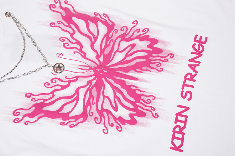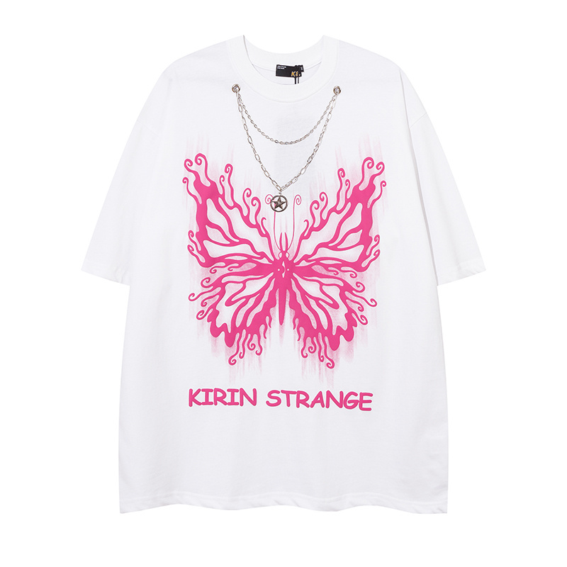 Повседневная белая KIRIN STRANGE футболка с бабочкой и цепью