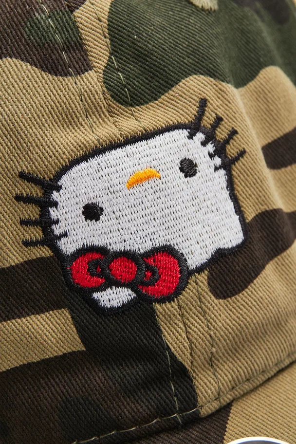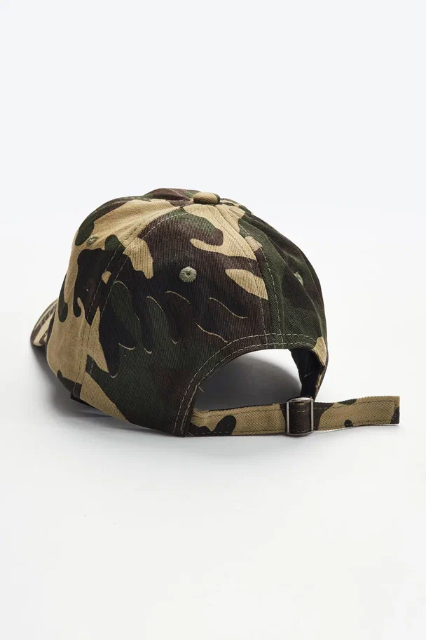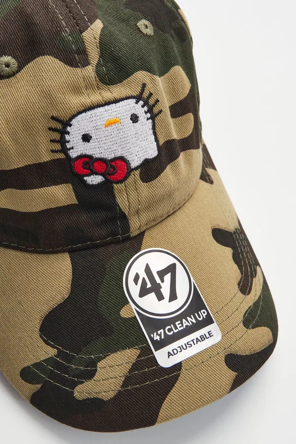 Кепка в камуфляжном принте с вышивкой Hello Kitty — дерзкий стритвир-аксессуар на грани милоты и иронии. Модель выполнена из плотного хлопкового твила, хорошо держит форму и имеет регулируемый ремешок сзади. Вышитый персонаж в стиле минимал траша добавляет кепке вайб «милой агрессии», а контраст бантика и милитари-текстуры делает образ запоминающимся.