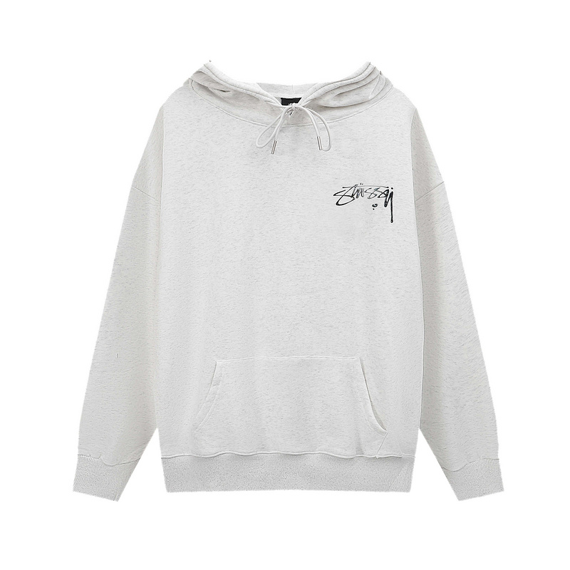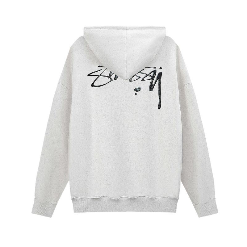Повседневная модель худи от бренда Stussy светло-серого цвета