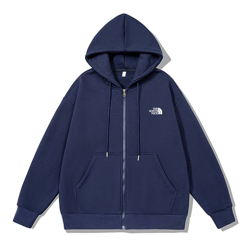 Повседневное из 100% хлопка тёмно-синее худи на молнии The North Face