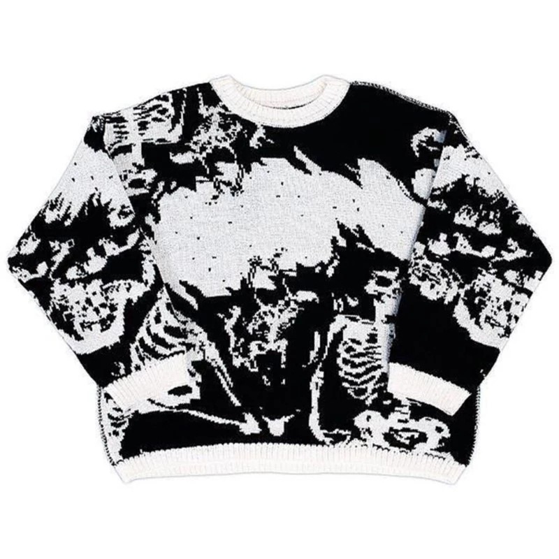 Повседневный свитер черно-белый с печатью "Скелеты"