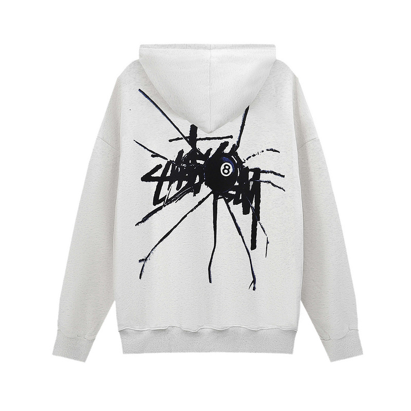 Практичное худи Stussy светло-серого цвета с большим принтом