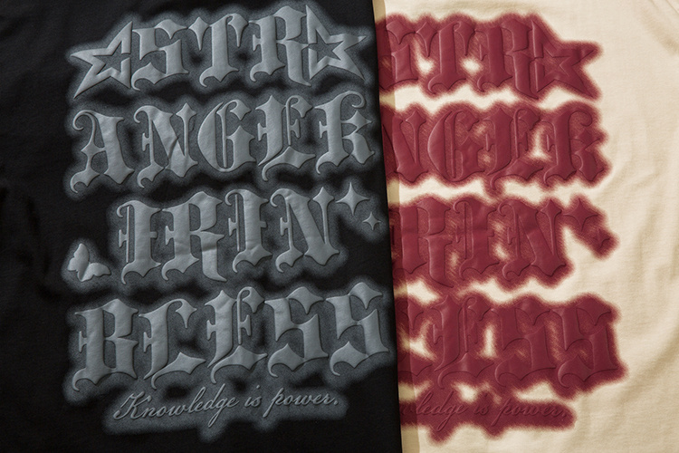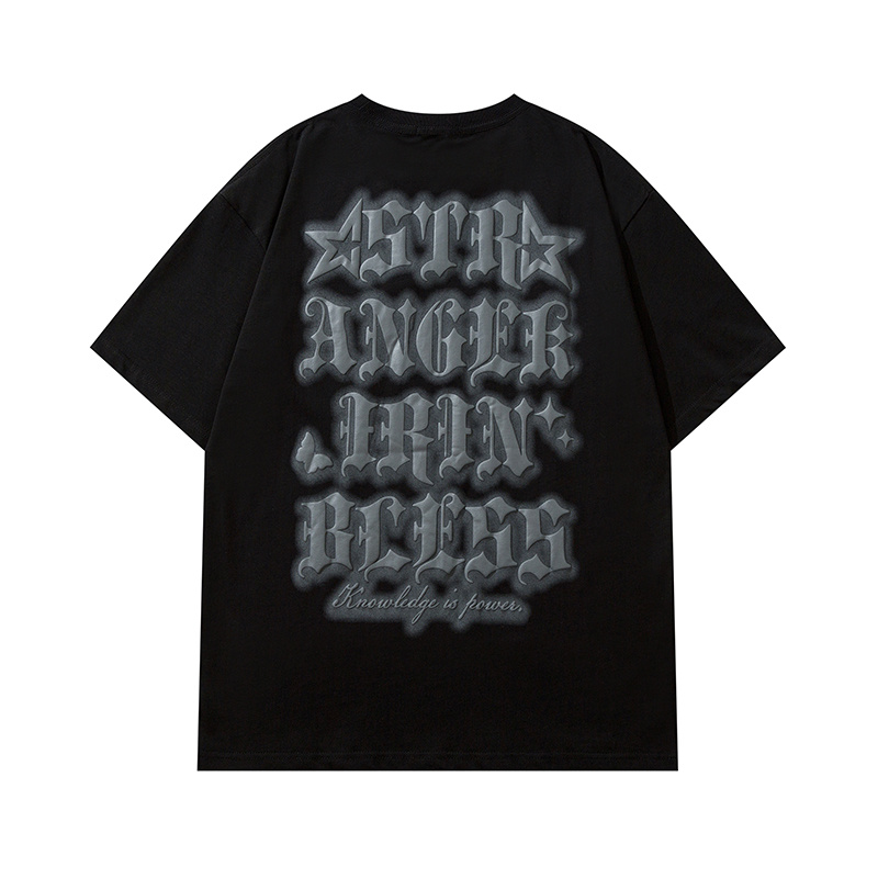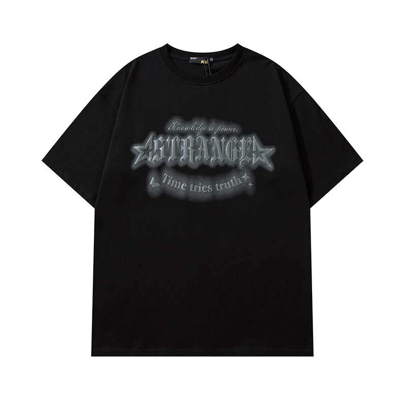 Прочная футболка KIRIN STRANGE черная с надписями серого цвета