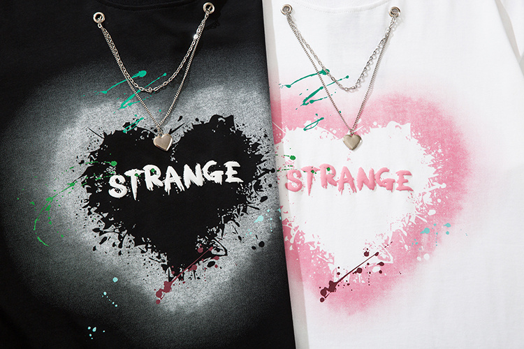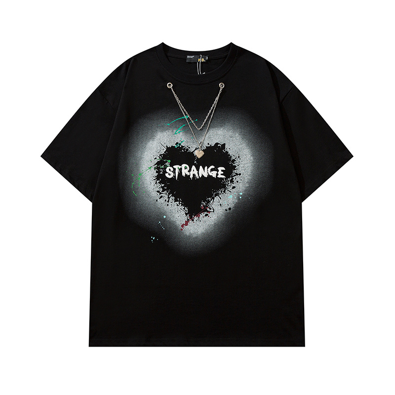 Простая футболка KIRIN STRANGE черная с подвеской "сердце"