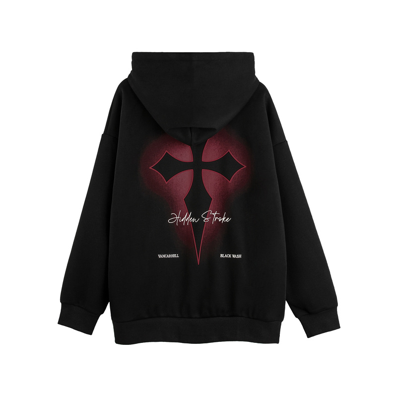 Простое худи черное VANCARHELL с трафаретом "Крест" на спине