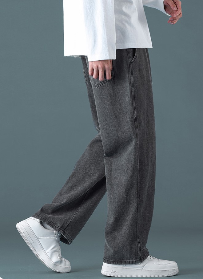 Прямые чёрные широкие джинсы Locketomy с эластичной резинкой на поясе