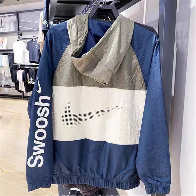 Разноцветная ветровка от бренда Nike с с логотипом на груди и спине