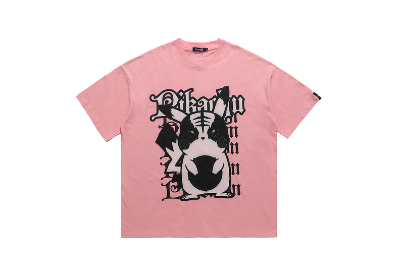 Розовая футболка с принтом "pikachu сатанист" на груди