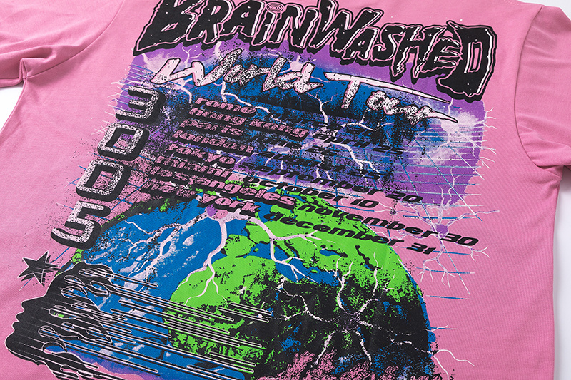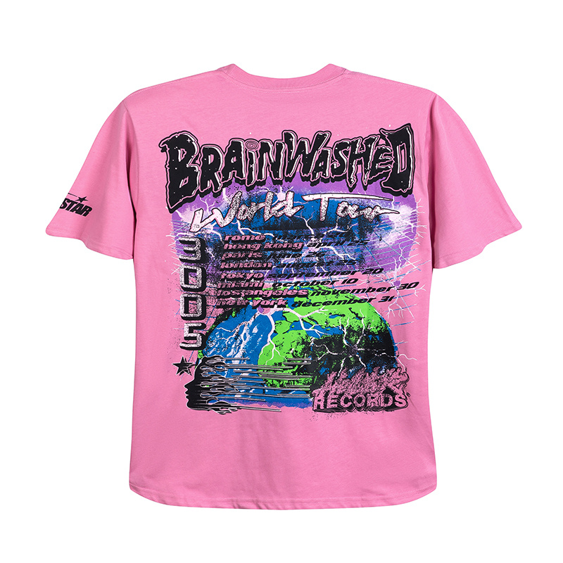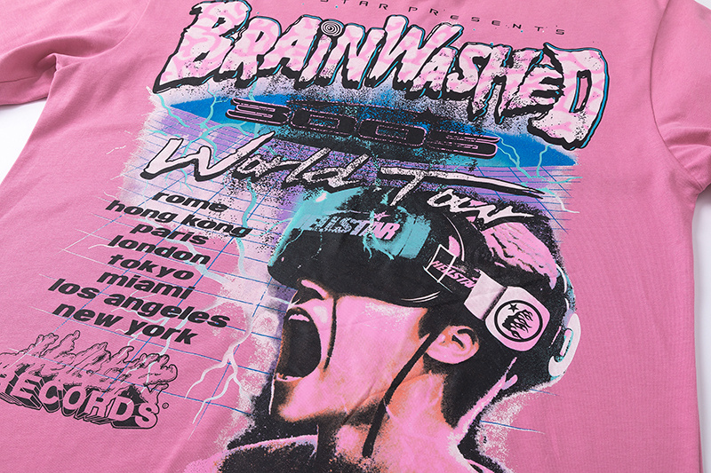 Розовая Hellstar с принтом "Виртуальная реальность" футболка оверсайз
