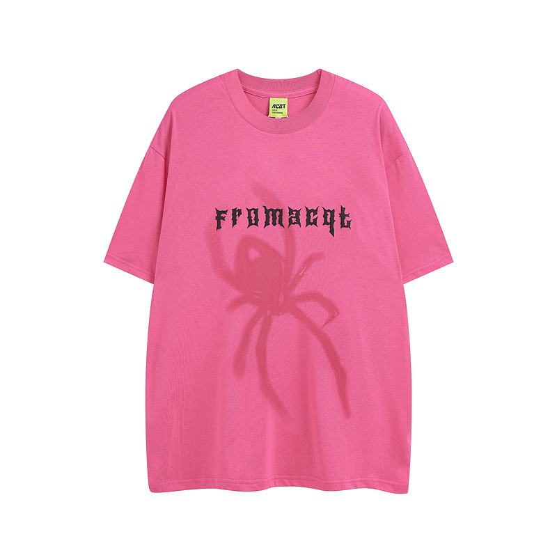 Розовая хлопковая футболка ACQT с принтом паука на груди