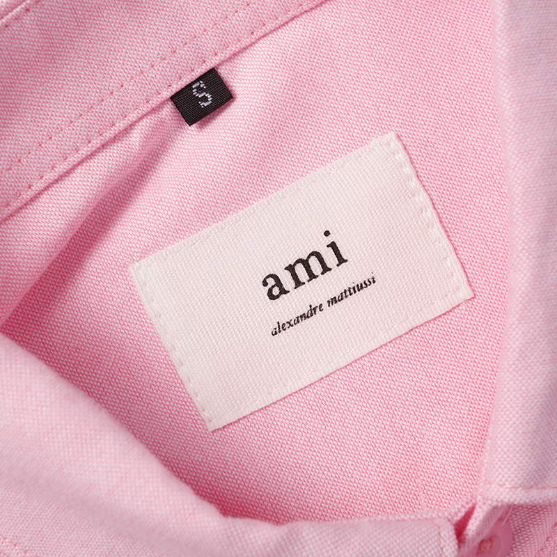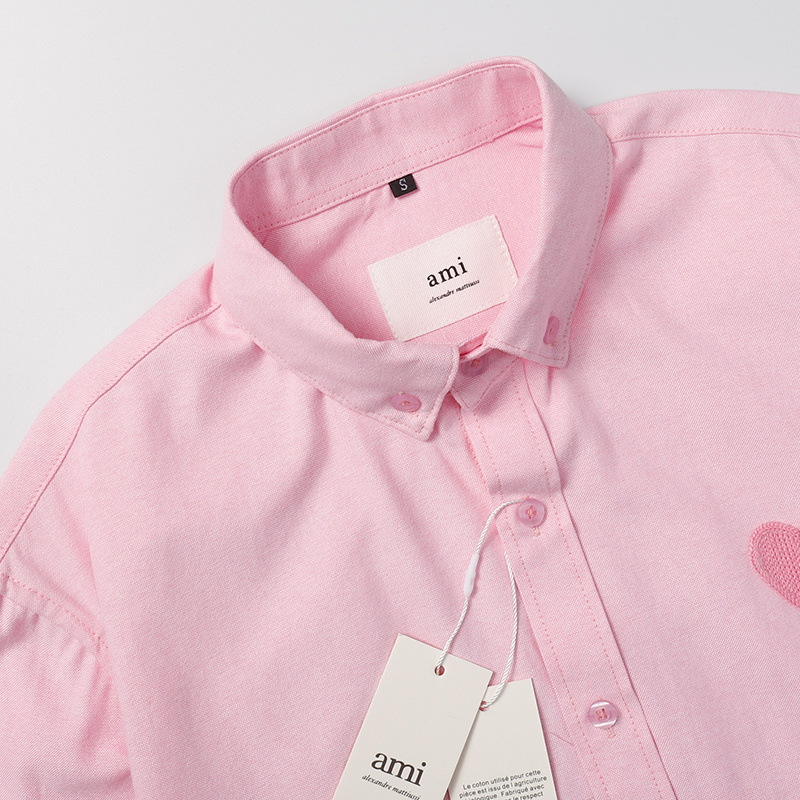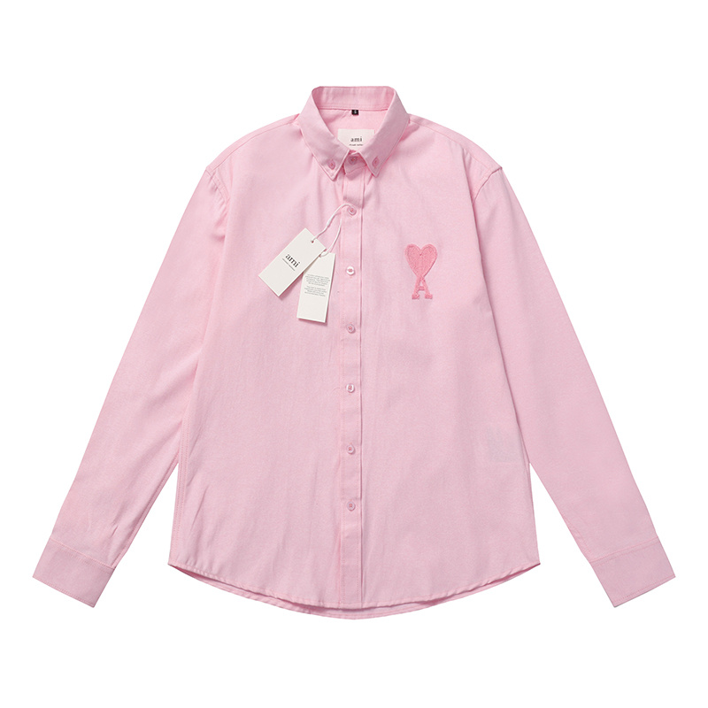 Розовая рубашка AMI с воротником стойка на пуговицах