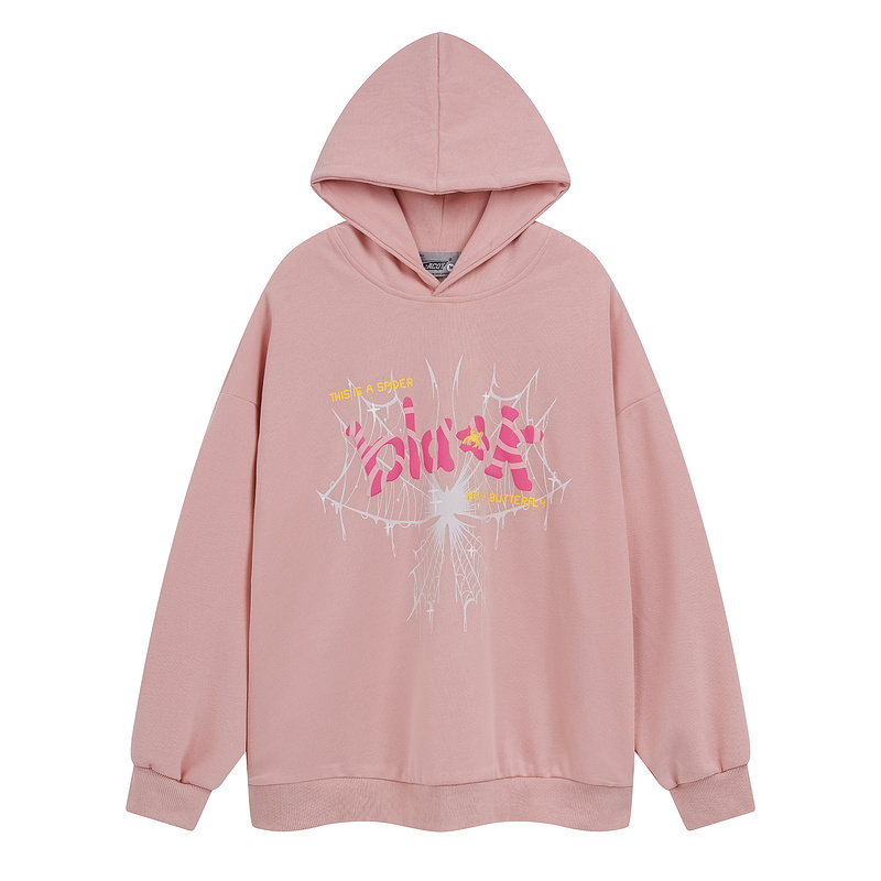Розовое ACQT без кармана с эластичными манжетами худи
