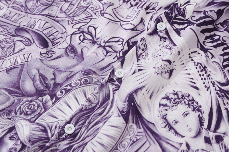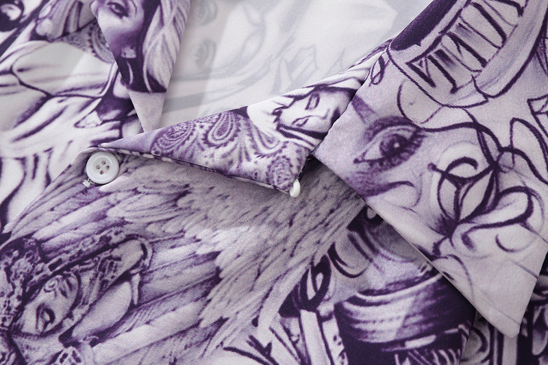 Рубашка белая TKPA с коротким рукавом и фиолетовым принтом