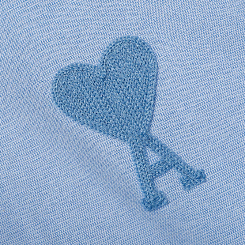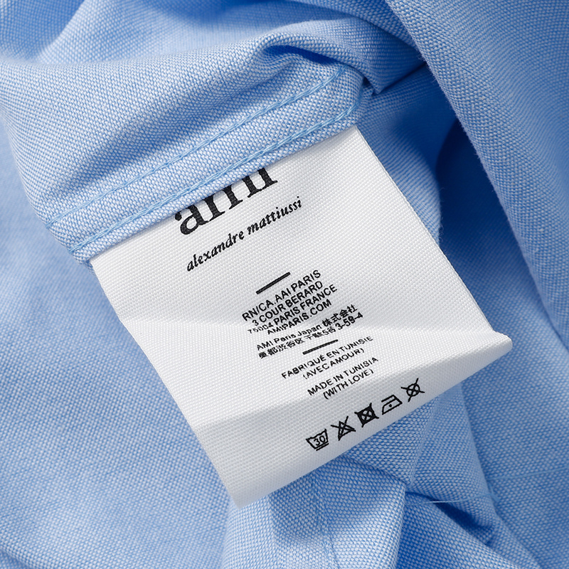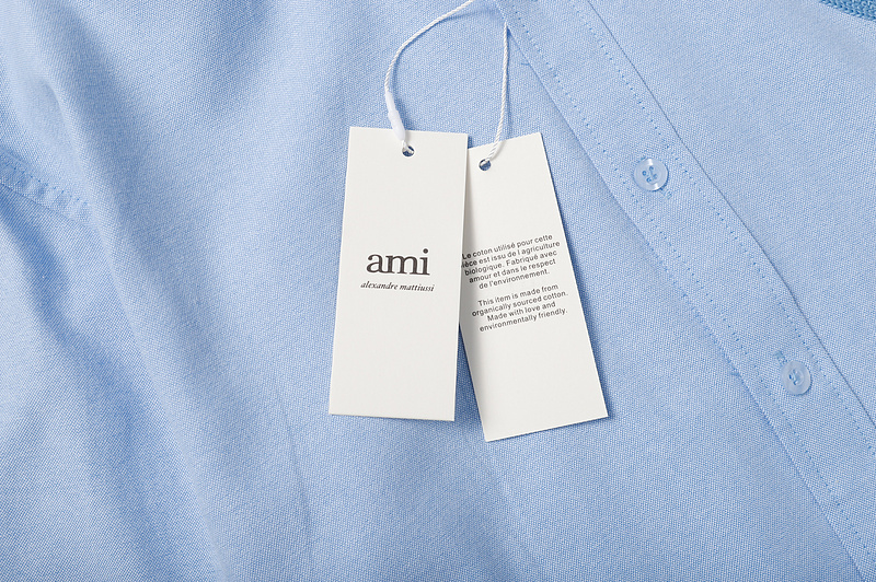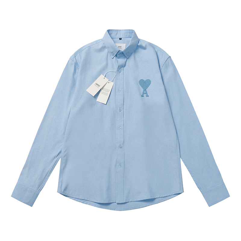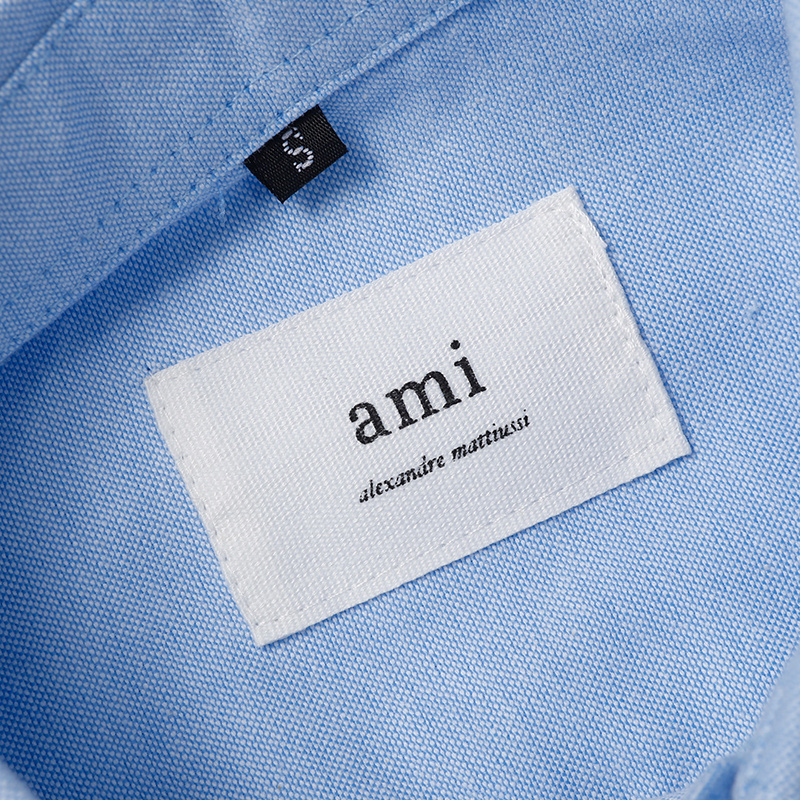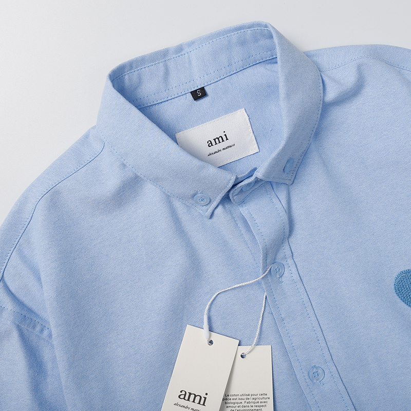 Рубашка прямого кроя AMI голубая на пуговицах с воротником-стойка