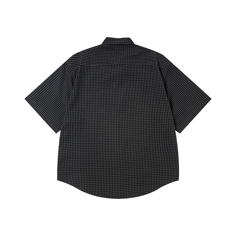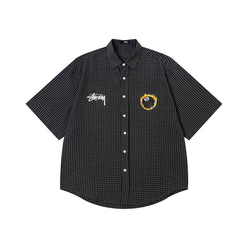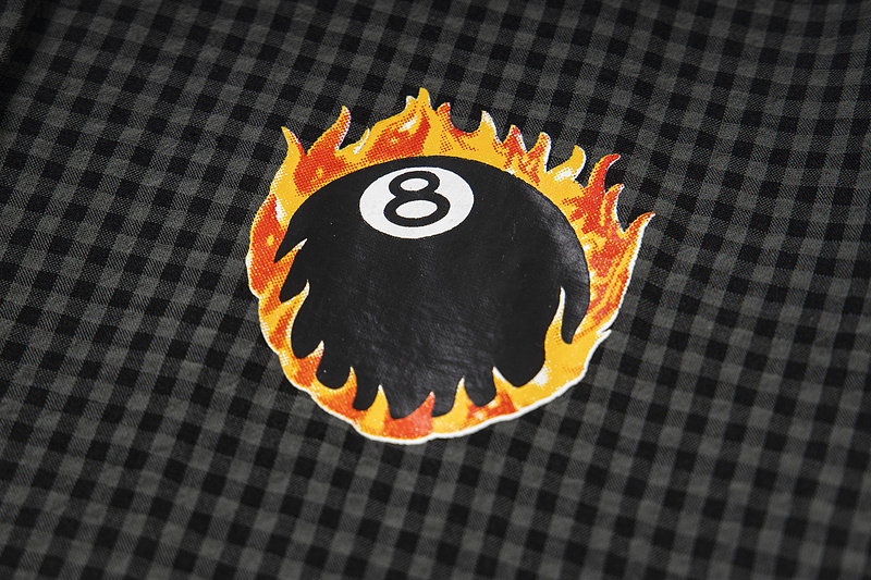 Рубашка Stussy черного цвета в мелкую клетку с принтом на груди