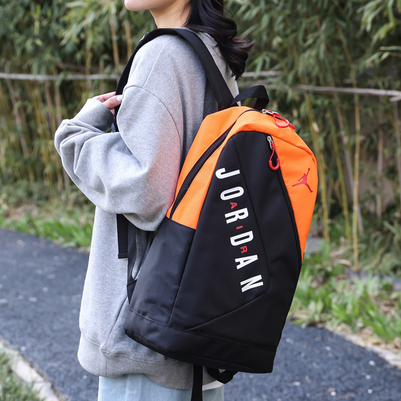 Рюкзак чёрно-оранжевого цвета бренда Nike Jordan с ярким подкладом