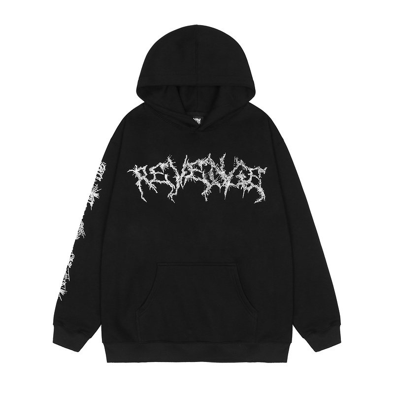 С брендовым рисунком и карманом кенгуру худи черное Revenge