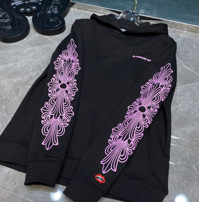 С фиолетовыми узорами на рукавах CHROME HEARTS худи черного цвета