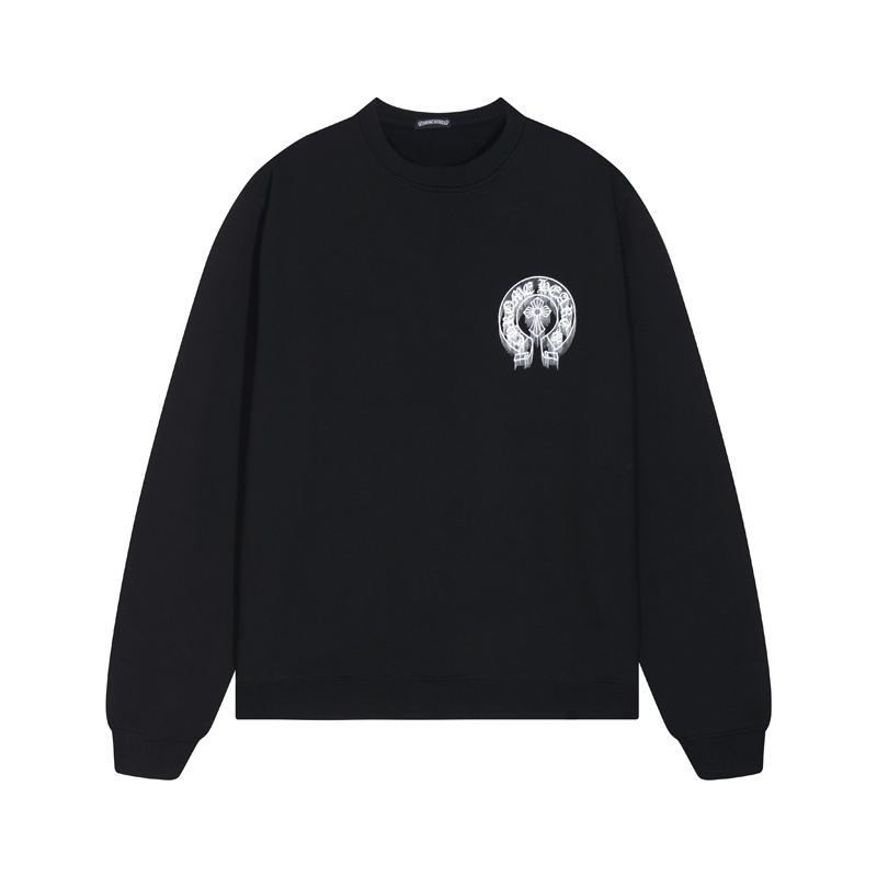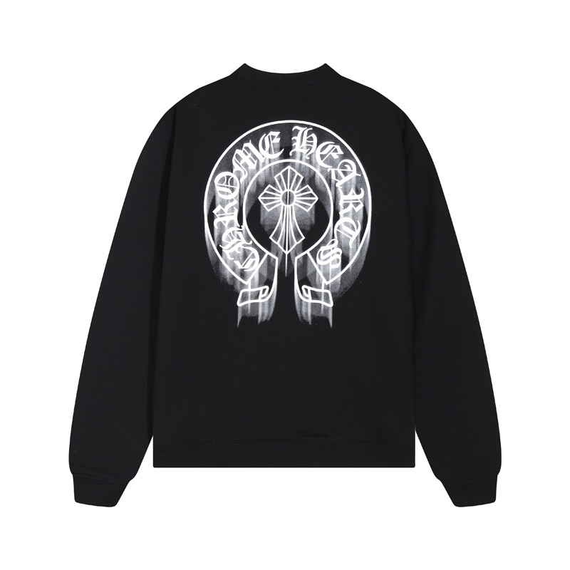 С фирменным принтом Chrome Hearts свитшот в чёрном-цвете оверсайз
