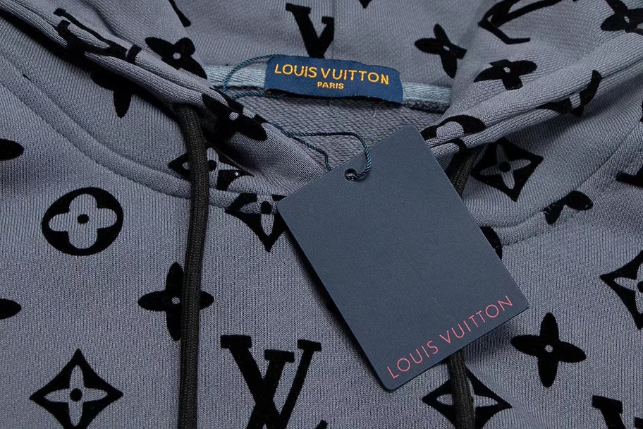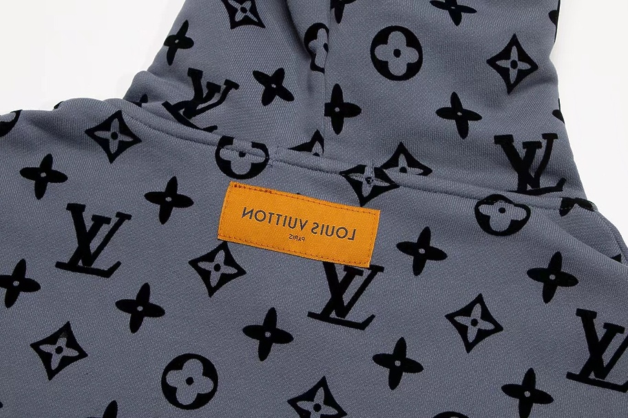 С логотипами бренда Louis Vuitton сине-серого цвета