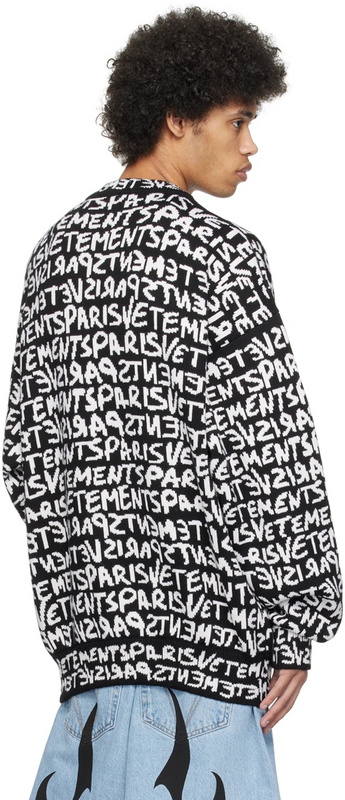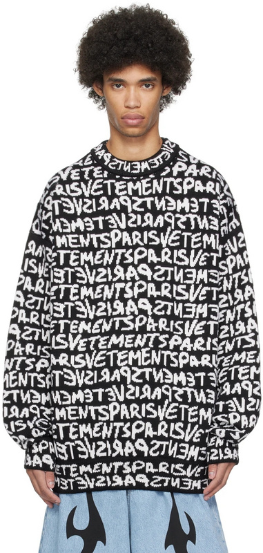 С множеством надписей Vetements чёрный свитшот со спущенными рукавами