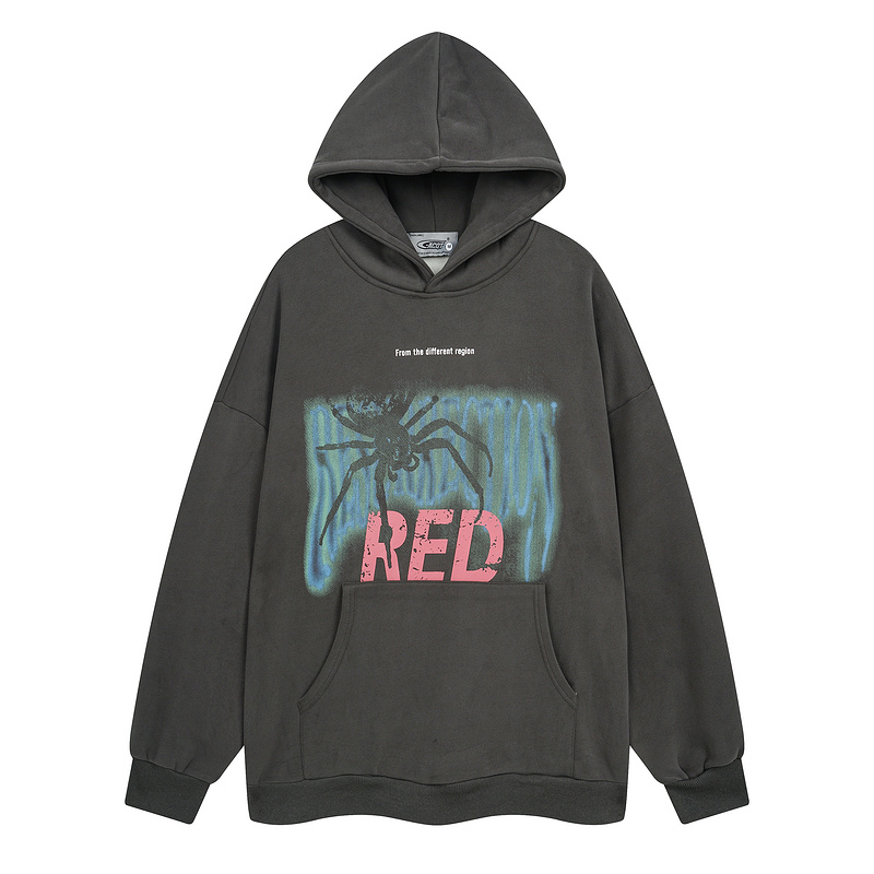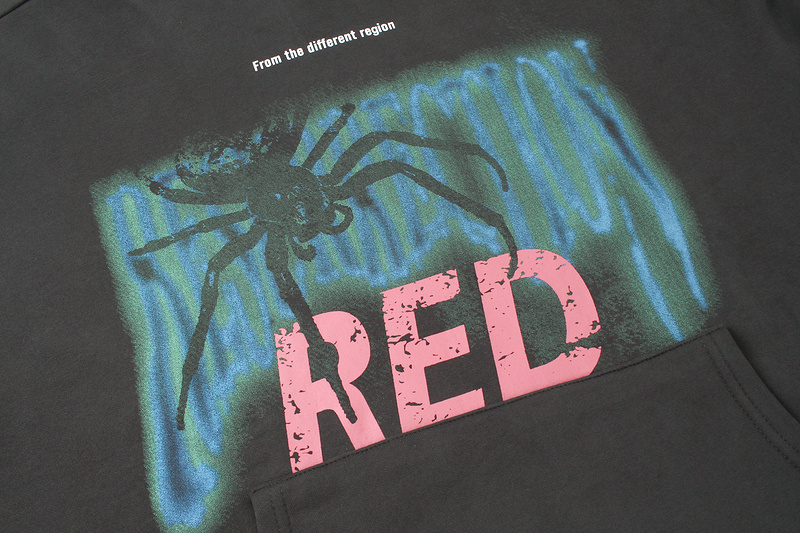 С надписью "RED" и принтом "Паук" ACQT серое стильное худи