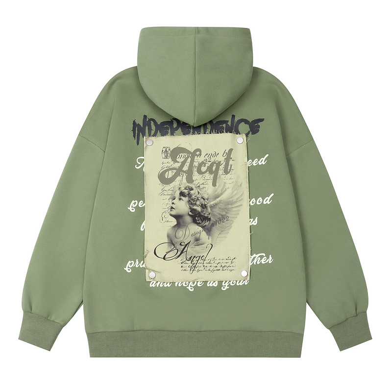 С нашивкой "Ангел" на спине ACQT оливковое стильное худи
