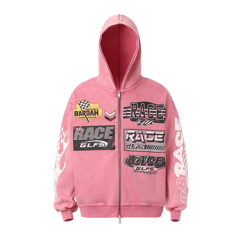 С объёмный капюшоном оверсайз зип-худи GLFS цвет-розовый