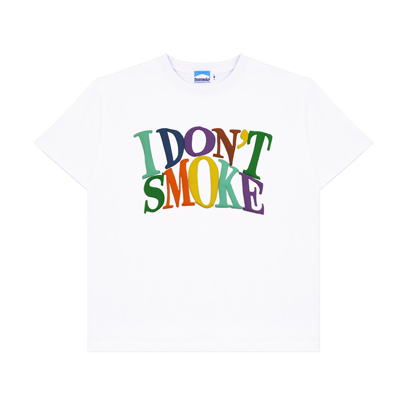 С разноцветной надписью Donsmoke футболка белая оверсайз фасона