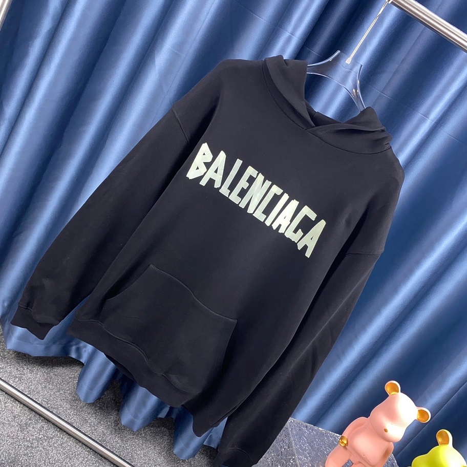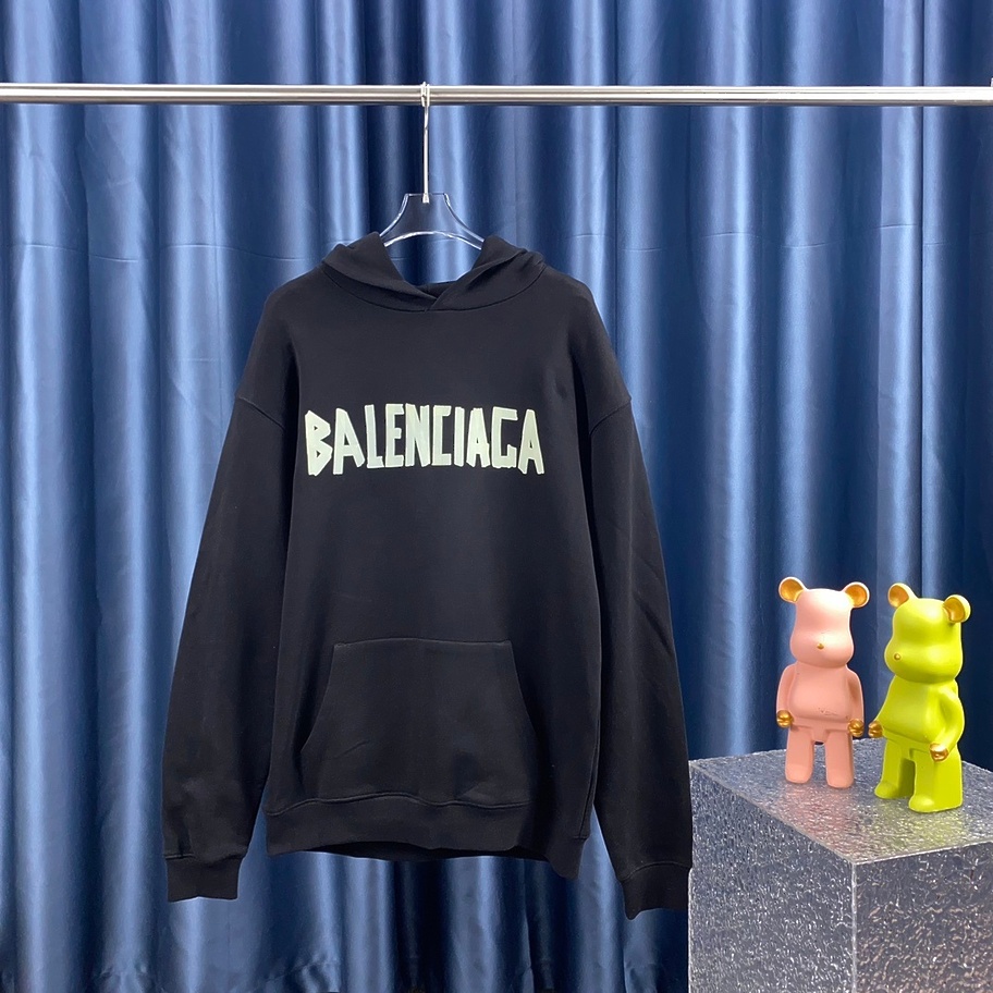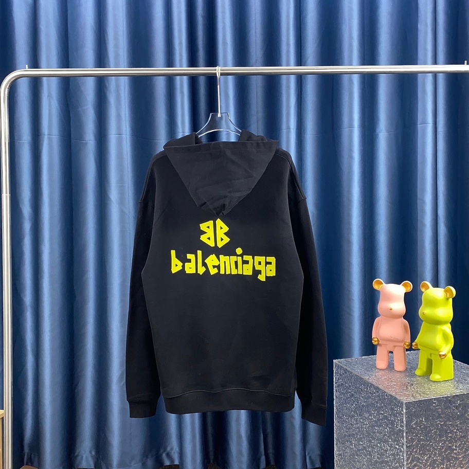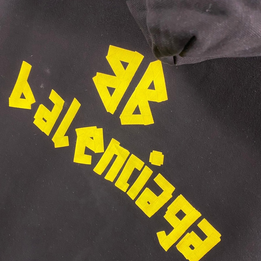 С желтой надписью на спине Balenciaga черного цвета стильное худи