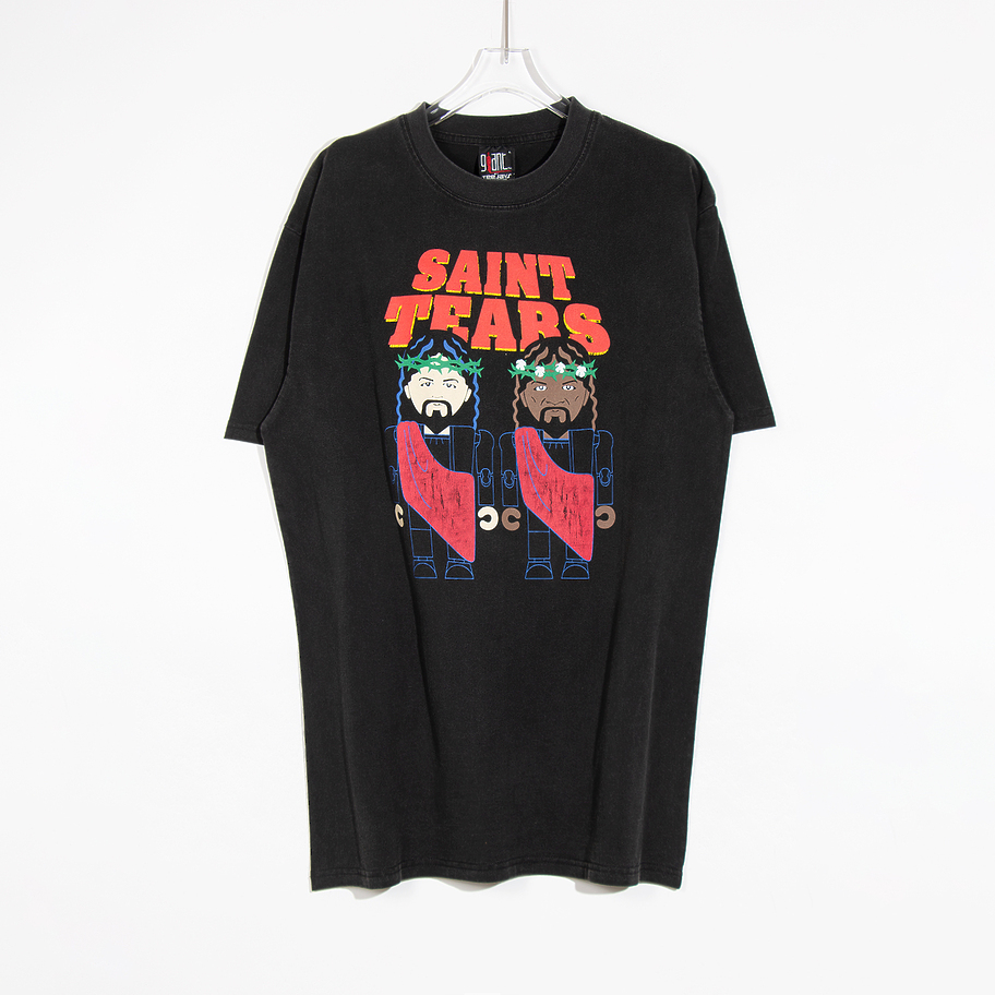Saint Michael чёрная футболка с 2мя персонажами и надписью Saint tears