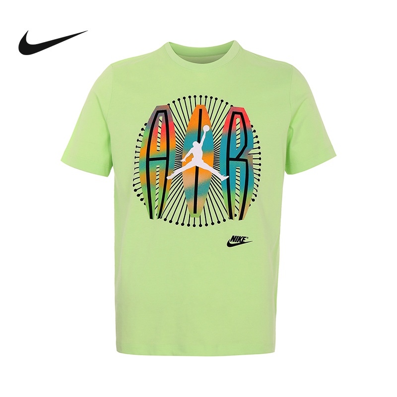 Салатовая Nike & Jordan футболка с принтом на груди и круглым вырезом