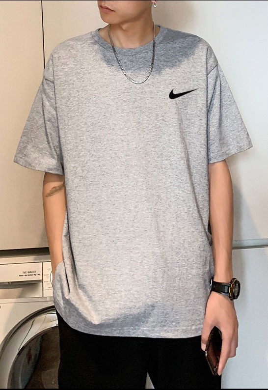 Серая футболка Nike Swoosh с лого на груди, оверсайз.