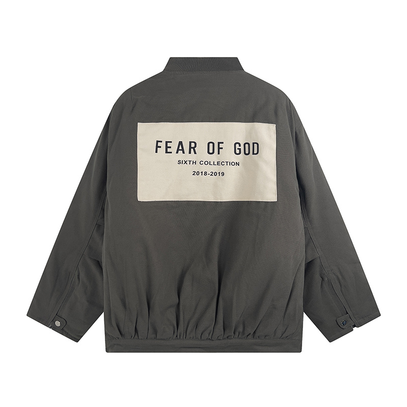 Серая куртка FEAR OF GOD с фирменной нашивкой на спине