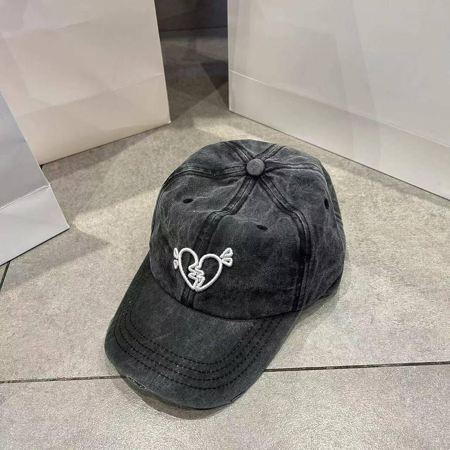 Серая с вышитым принтом "Разбитое сердце" хлопковая бейсболка
