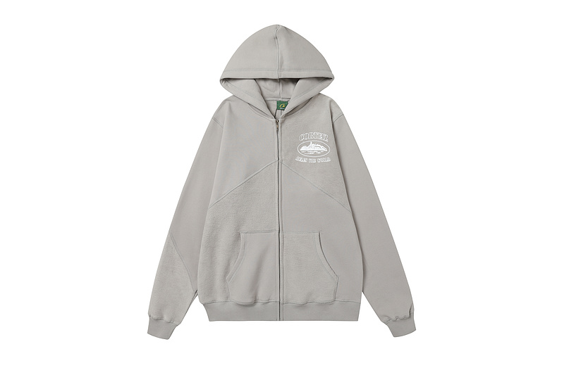 Серая толстовка на молнии с эмблемой бренда Corteiz и карманом-кенгуру