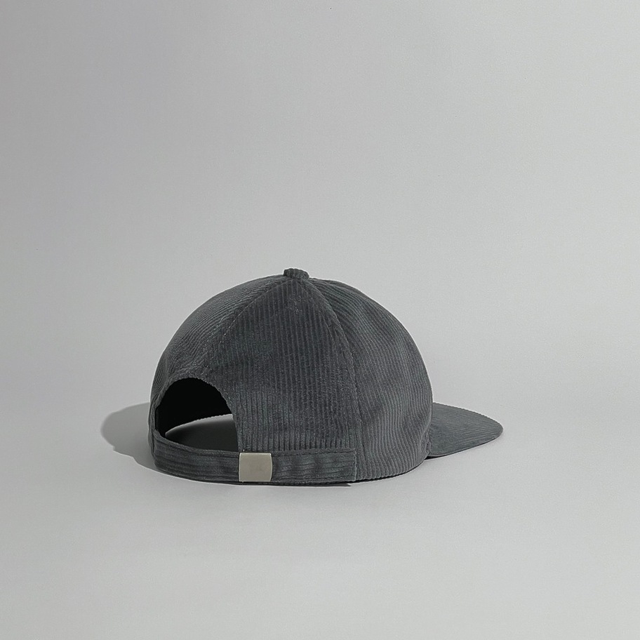 Серая вельветовая бейсболка с прямым и плотным козырьком