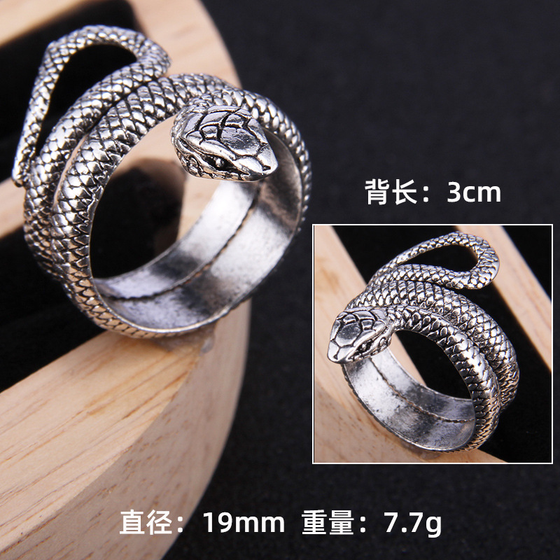 Серебряное кольцо в форме змеи - широкое на каждый день