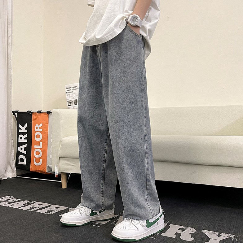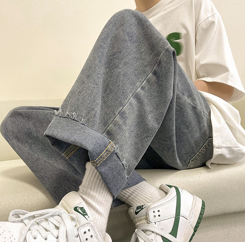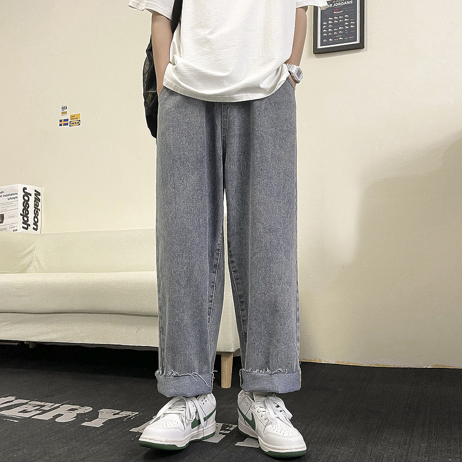 Серо-синие от бренда Locketomy свободные джинсы с необработанным низом